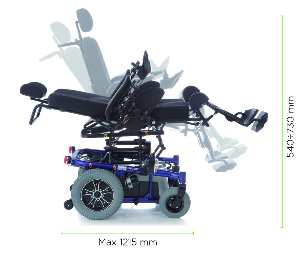 Tämä kallistuva sähköpyörätuoli on suunniteltu tarjoamaan erinomaista mukavuutta ja monipuolisia toimintoja päivittäiseen käyttöön. Maalattu teräsrunko ja säädettävät käsinojat takaavat kestävyyden ja mukautuvuuden. Istuin on valmistettu pehmustetusta, hengittävästä mustasta ja sinisestä nailonista, joka lisää käyttömukavuutta pitkäaikaisessakin käytössä.