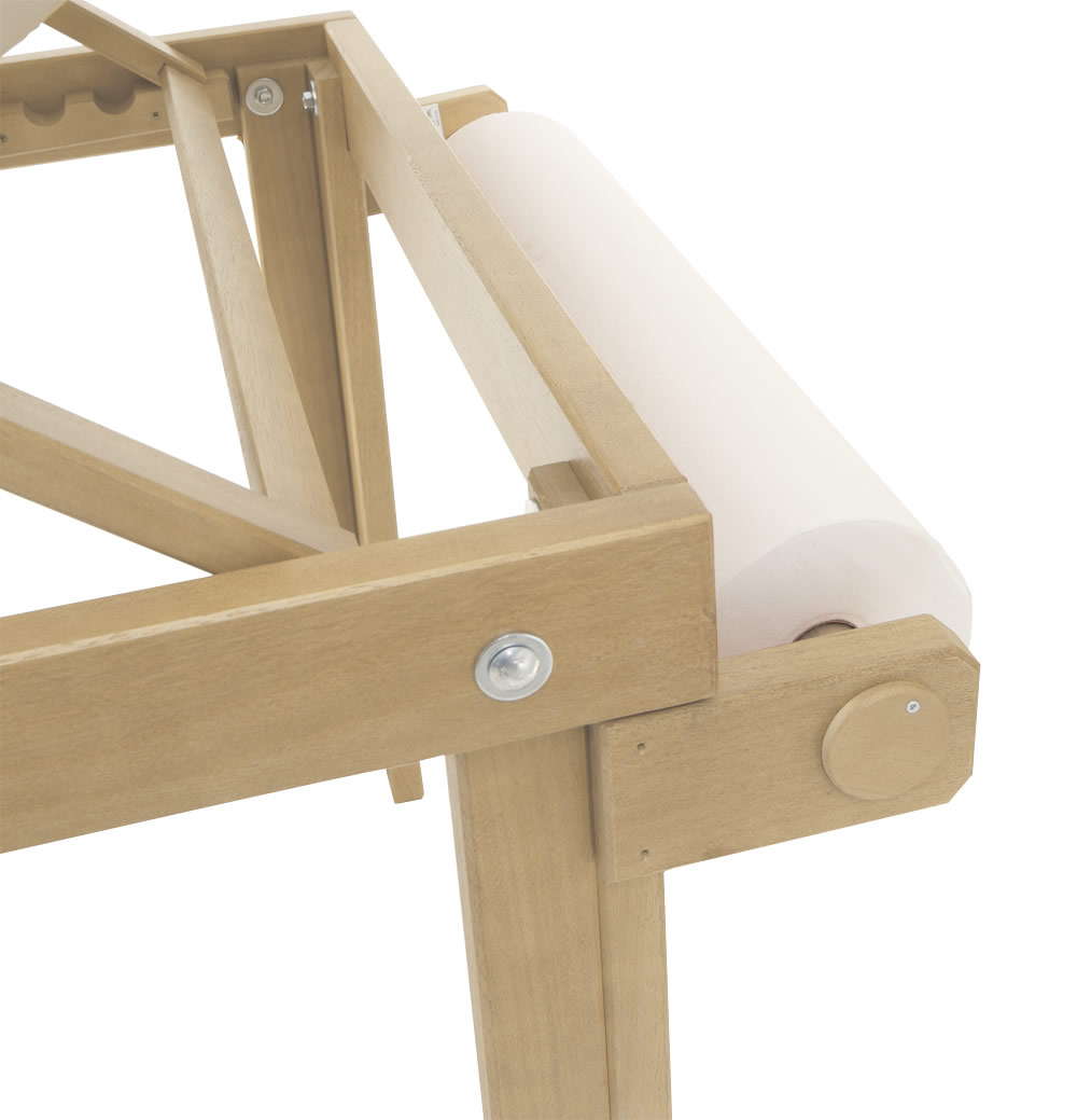 Tämä korkealaatuinen puinen hoitopöytä on suunniteltu terapia- ja tutkimuskäyttöön. Puinen runko, polyuretaanipehmuste (tiheys 25) ja 5 cm korkea pinta takaavat mukavan ja tukevan hoitokokemuksen.